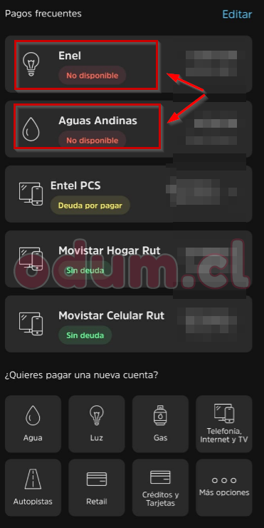 Si es que eso está en el apartado de "Cuentas" de la aplicación, debería. Eso sí, la app se actualizó y a algunos les aparece como "Servicios > Pago de cuentas" pero es lo mismo.