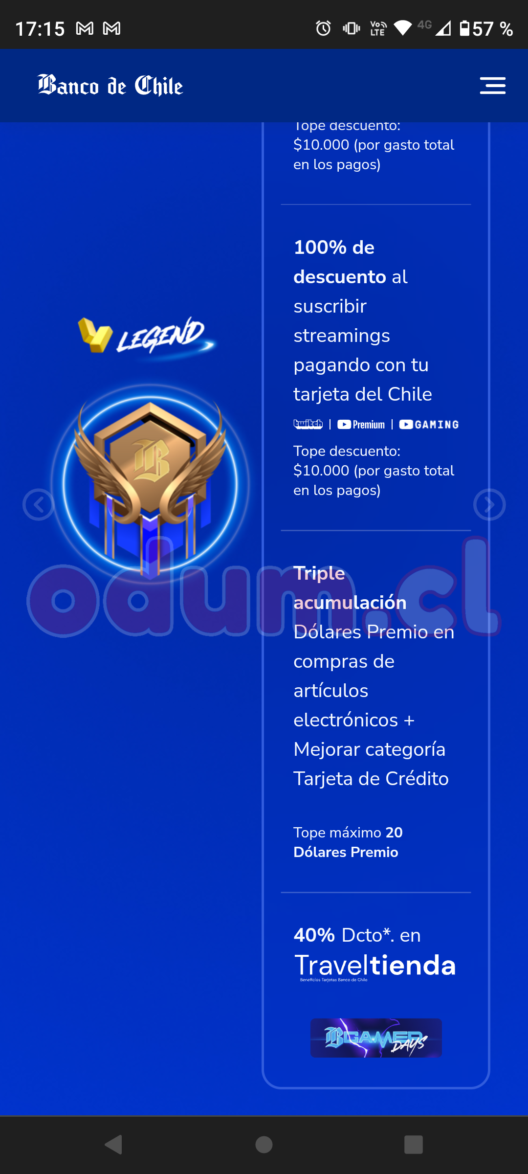 Descuentos🏷️ 40% descuento categoría gamer Travel de Banco de Chile