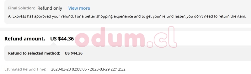 Al final le devolví al chino las 37 lukas del producto que me había devuelto, la razón es que el otro producto (que nunca llegó) me fue reembolsado por los weones de Aliexpress (después de haberse negado varias veces a hacerlo) y es injusto que un chino pague los platos rotos porque otro chino no me envió lo que compré.