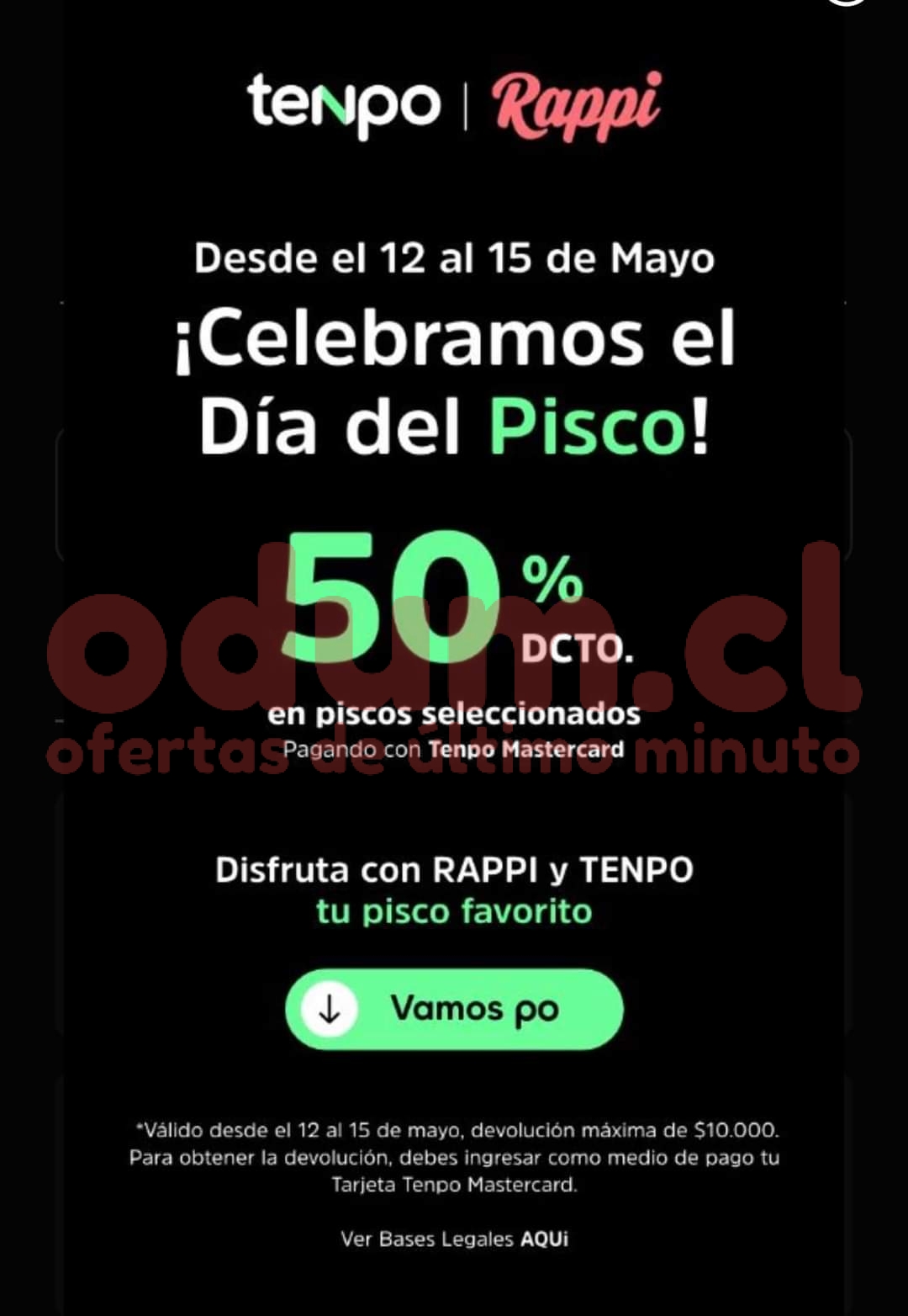 50% de descuento al comprar pisco por rappi, válido hasta el domingo y devolución máxima 10lks.