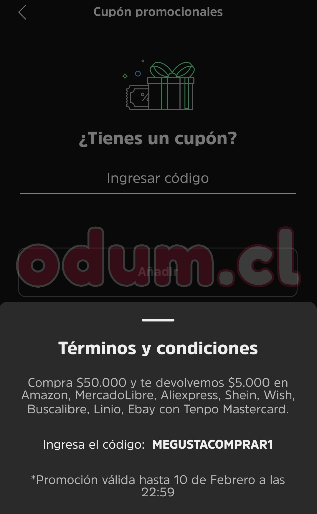 ME LLEGO EL MISMO PERO DESPUES ME LLEGO UNO DE 20.000 DESCONTABA 10.000 QUEDE METIDO CUAL TOMARAMe apareció un cupón, 10k de devolución por compra de 40k en supermercados, no es malo