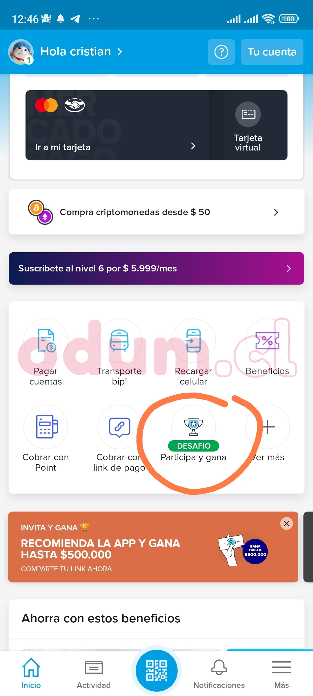 En qué parte salen?Cabros, aprovechen de mirar la app que hay algunos desafíos para tener cashback