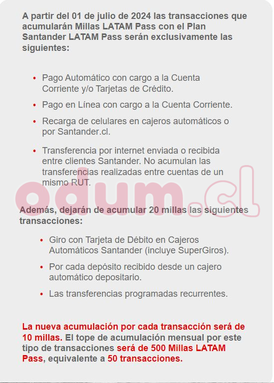 Me acaba de llegar un correo con un cambio en el plan santander Latampass: