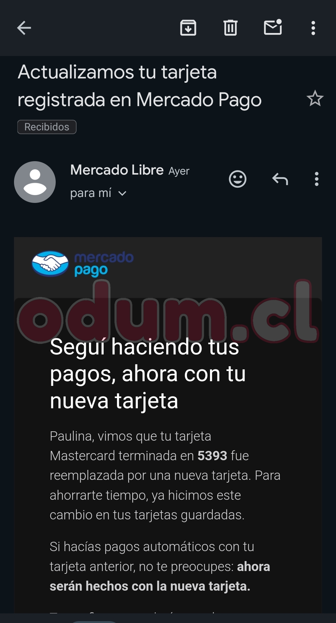 Me dió mieditoTambién me llegó el correo de movistar pero no le di importancia. El que me preocupó fue el de mercadopagoVer archivo adjunto 20523