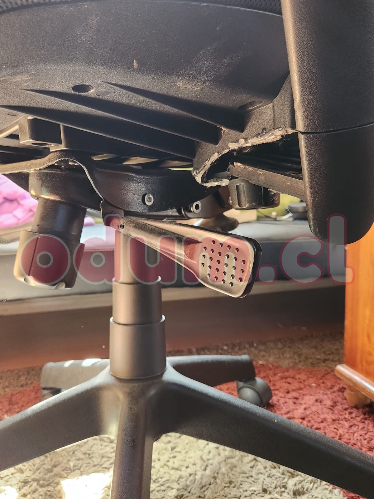 pareciera que esa alfombra motivaba a hacerle mucha fuerza para desplazarte/reclinarte (o nunca la usaste sobre ella)?Ahora que alguien mencionó contatto, así quedó mi silla al par de meses por simplemente apoyar mas el brazo izquierdo (se fue a la pieza del olvido)