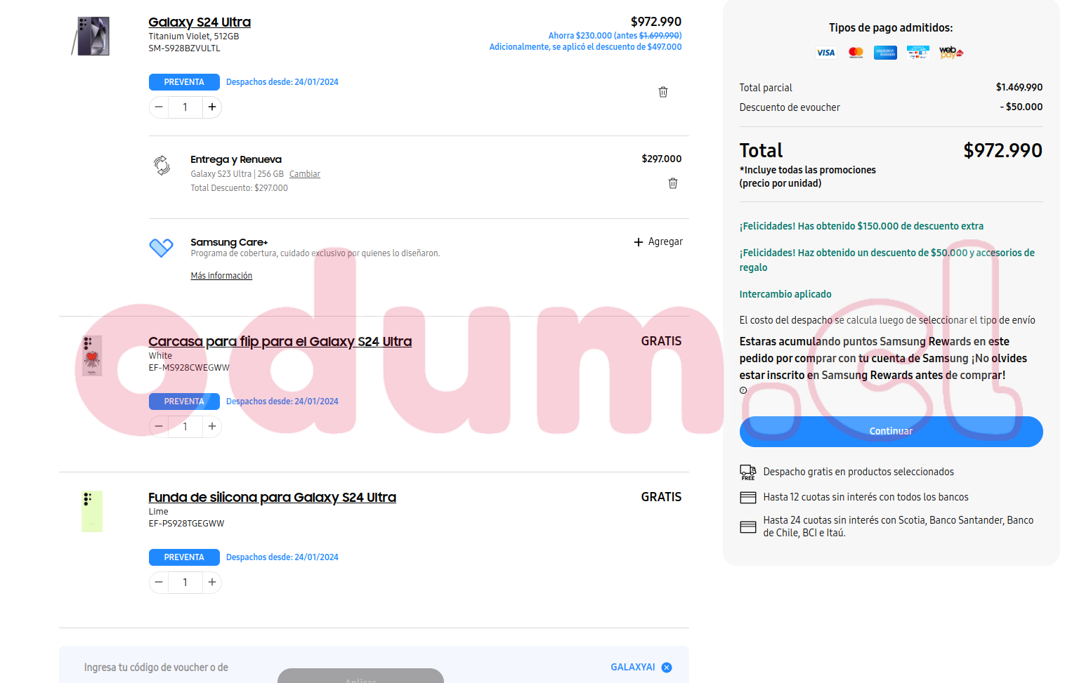Simulé un S24 Ultra de 512GB con el código GALAXYAI + Entrega de S23 Ultra de 256GB