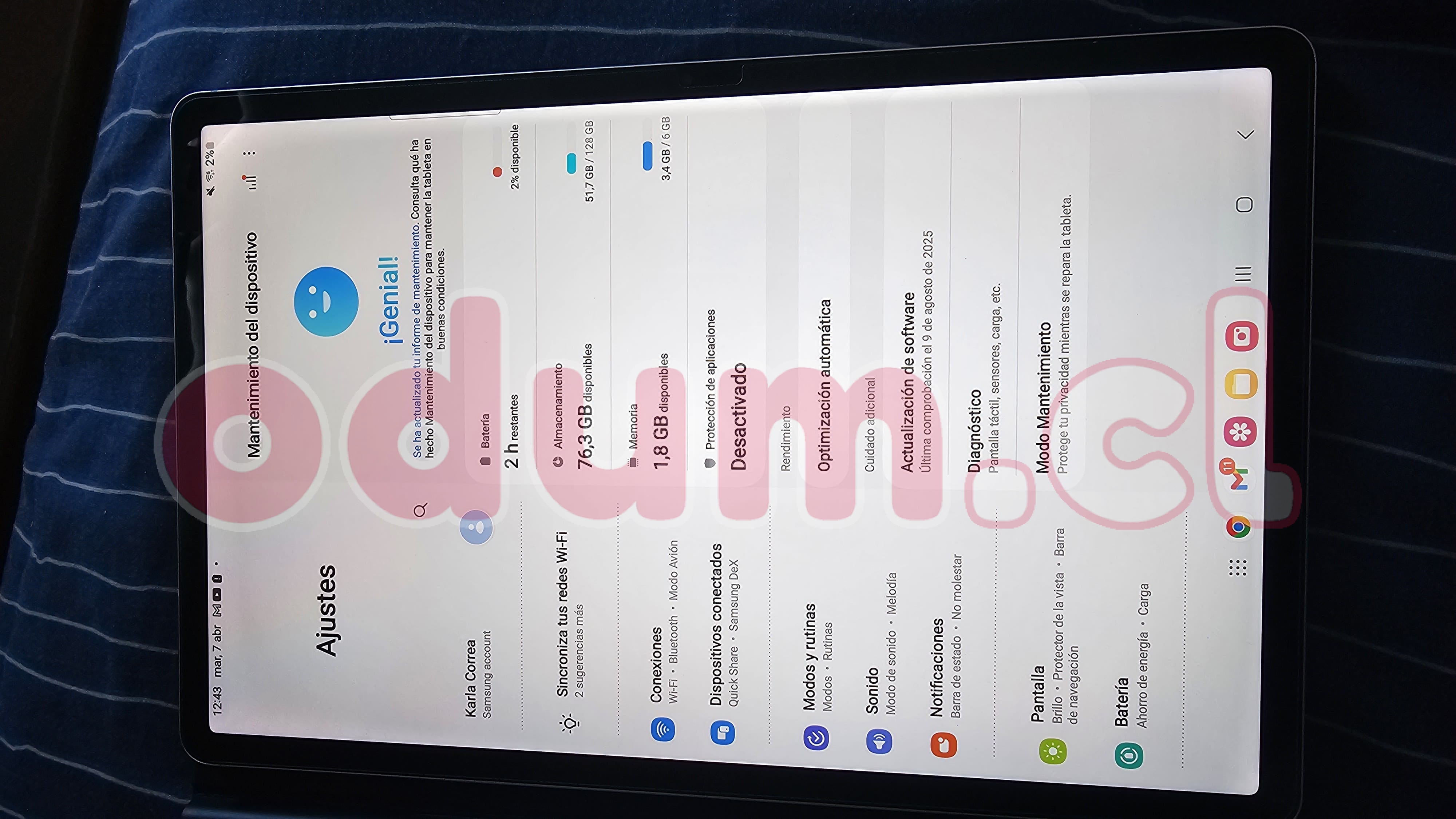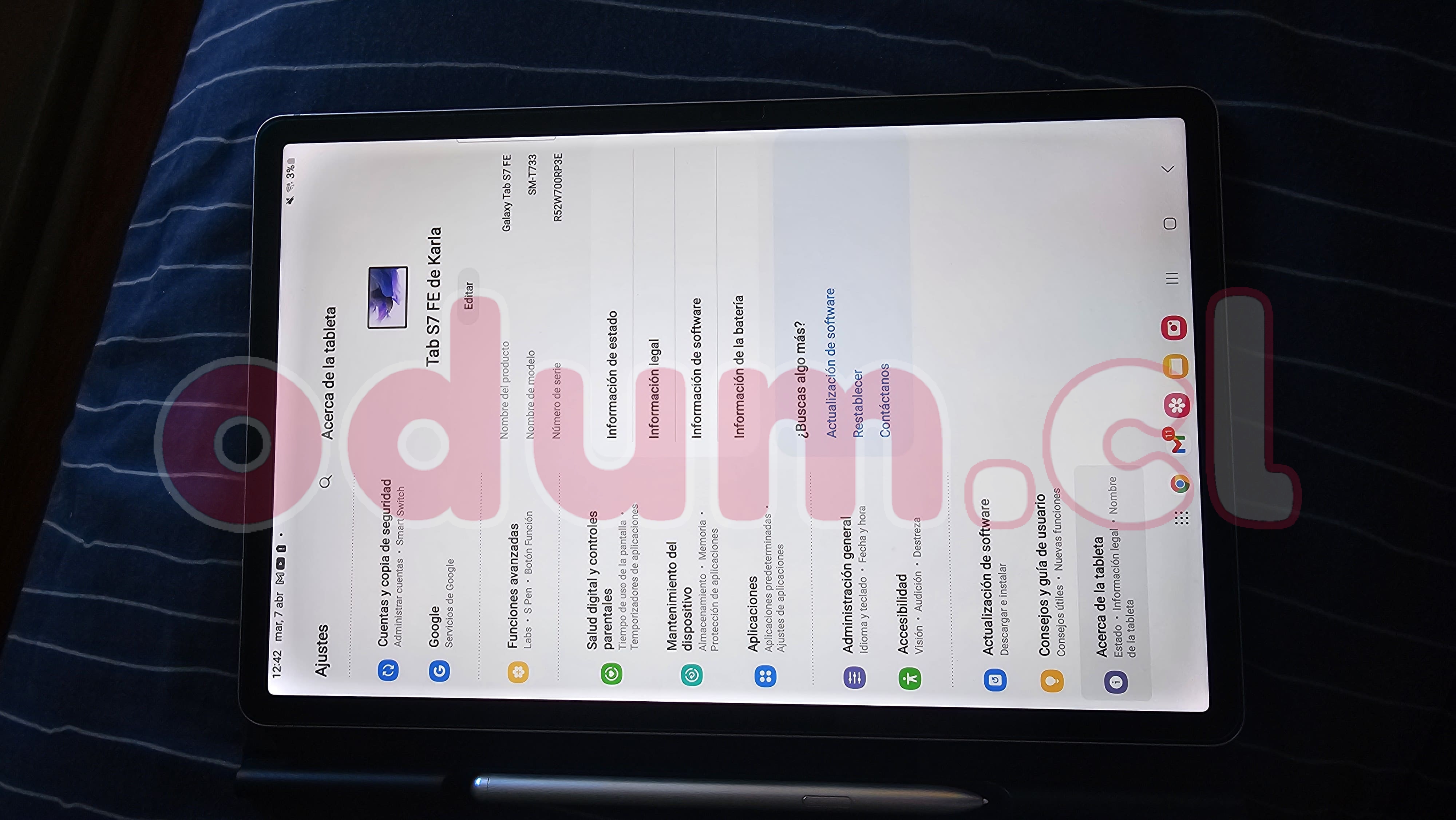 Se vende tablet Samsung Galaxy Tab S7 FE en excelente estado, funcionando al 100%.