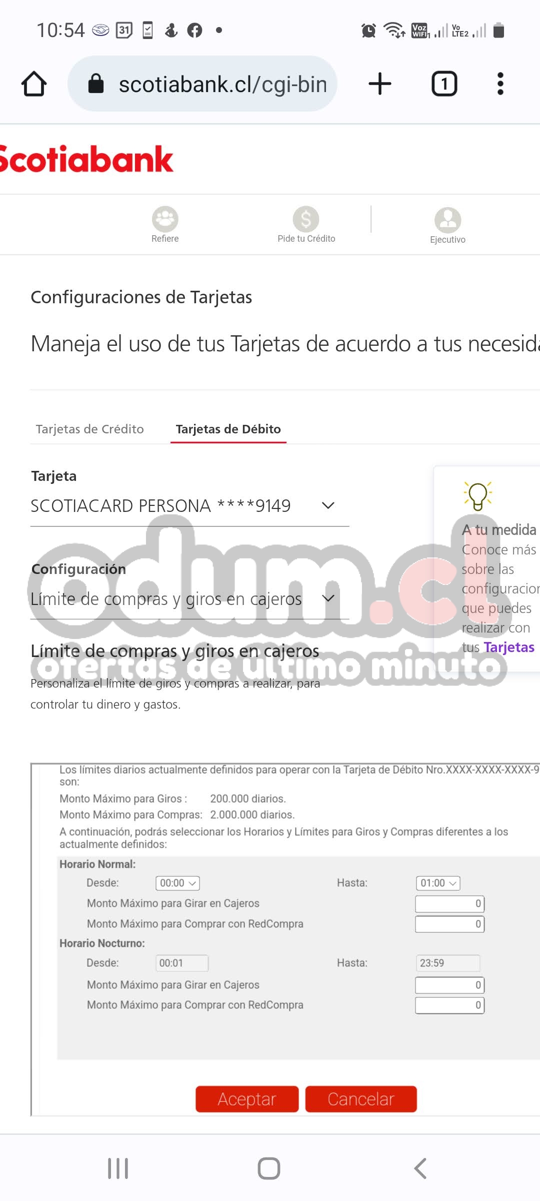 Una vez logrado activar el “Keypass”, me metí de curioso a las configuraciones de la tarjeta, y me encontré con esto. ¿Será tan así que el máximo de compra diario sea 2 palitroques?: