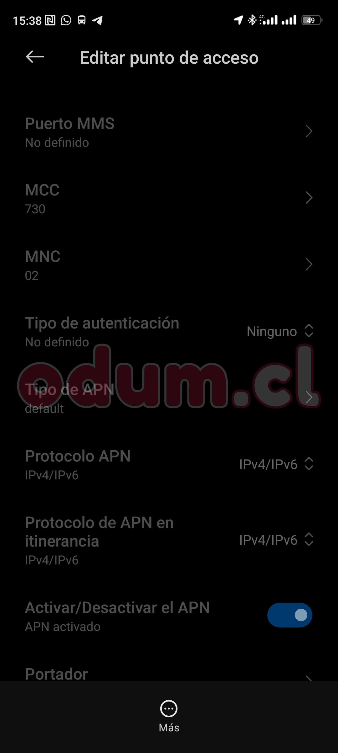 - Protocolo APN: IPv4/IPv6