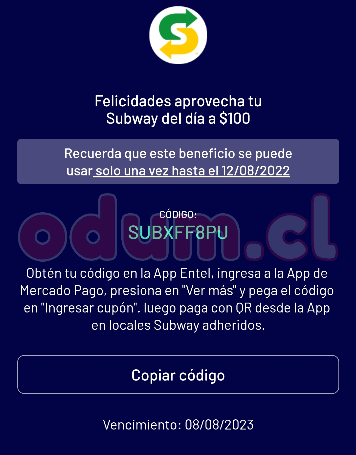 A mi me pasó algo similar hace un tiempo con un código de Movistar para Uber eats, pero ahí cagaste por todo el mes, ya que solo se permite generar 1 al mes. Por más que reclame nunca se pudo solucionar