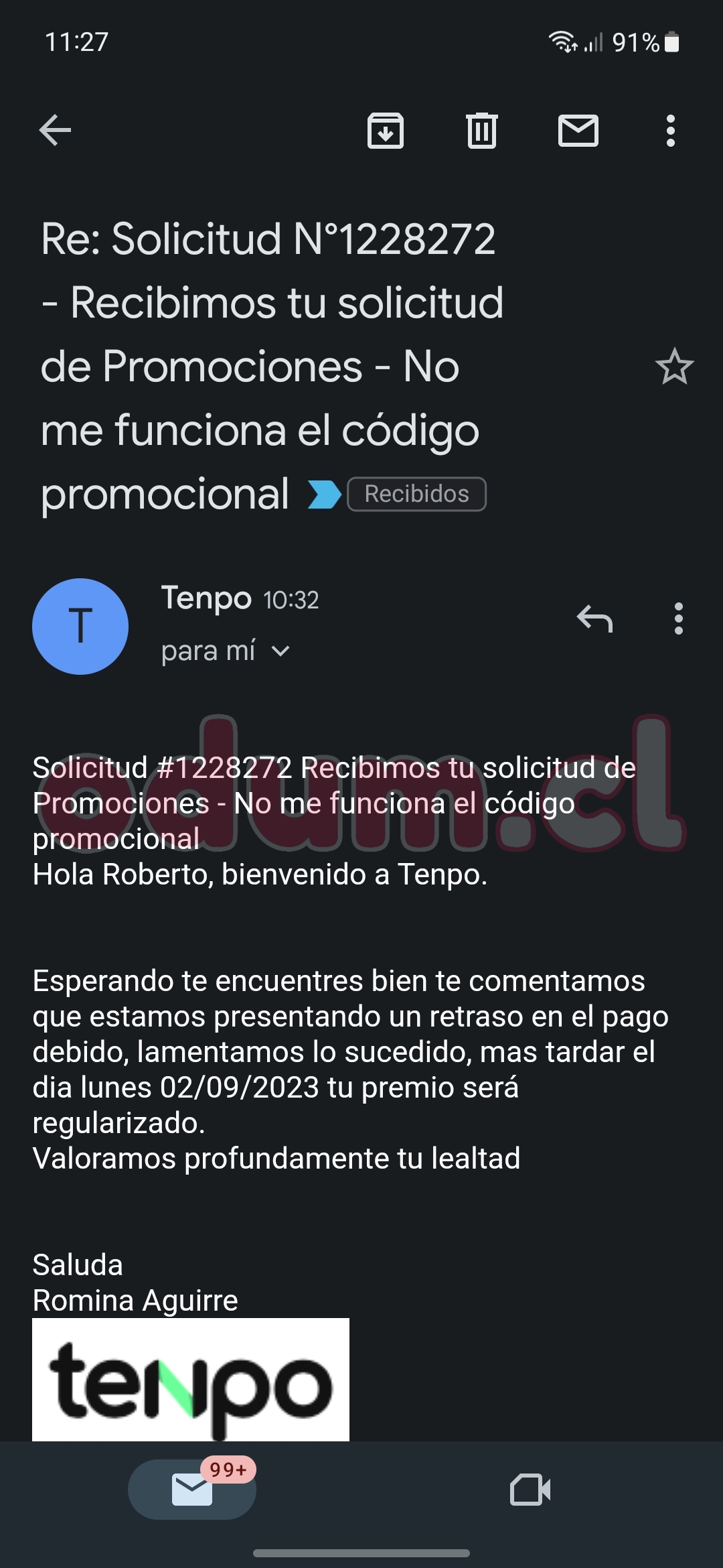 yo alegue, me llego ese correo pero no me han cargado el saldo, volvi a alegaar me llego el mismo correo ajsdjajda, soporte ql penca como siempreayer reclame por lo de unired. Hoy me respondieron