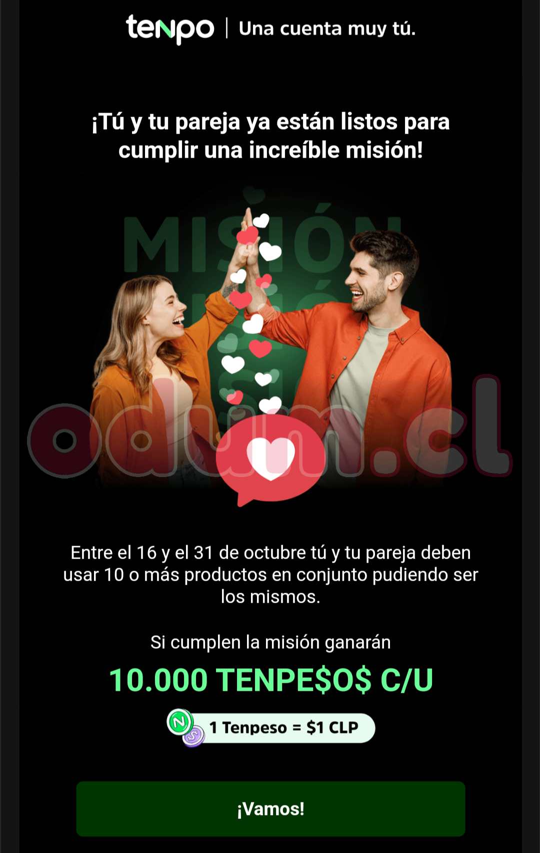 ya salieron las bases, 10 compras entre los 2 usuarios, cada usuario con distinta transacción sin repetir por usuario, cada uno puede pagar una cuenta y es considerado como 2, pero no pagar 2 cuentas un mismo usuario pues se considera como 1 y todo este ma:tenpo so webeo para 10 mil tenpesos el otro mes
